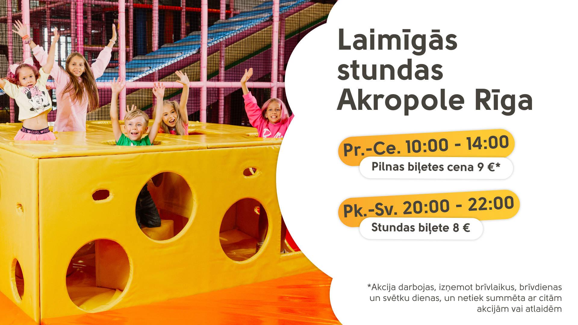 Katru dienu no plkst. 10:00 līdz 22:00 mūsu parkā jūs gaida daudz interesantu lietu.
