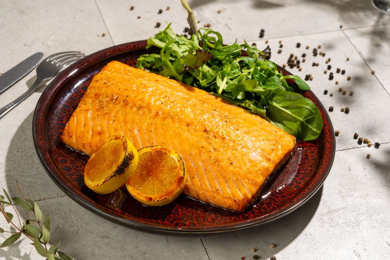 Mazsālīts lasis, bulciņa, salātu maisījums, pesto mērce, krējuma siers, kaperi, citrons, avokado, olīveļļa, ķirbju sēklas.